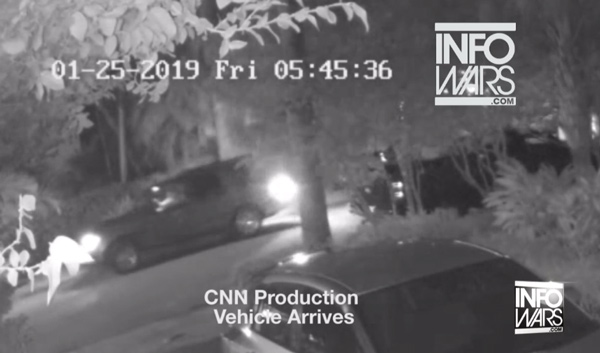 The CNN production vehicle arrives, having been illegally tipped off about the imminent raid: