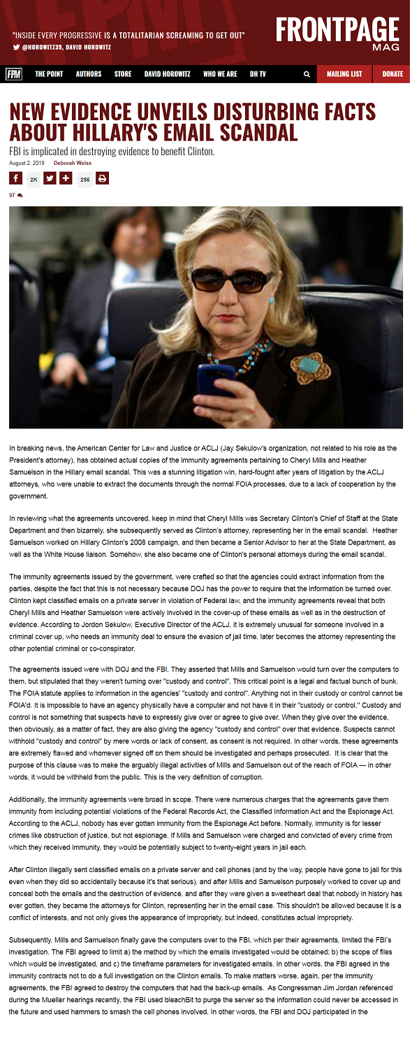 From Front Page Mag, NEW EVIDENCE UNVEILS DISTURBING FACTS ABOUT HILLARY’S EMAIL SCANDAL.