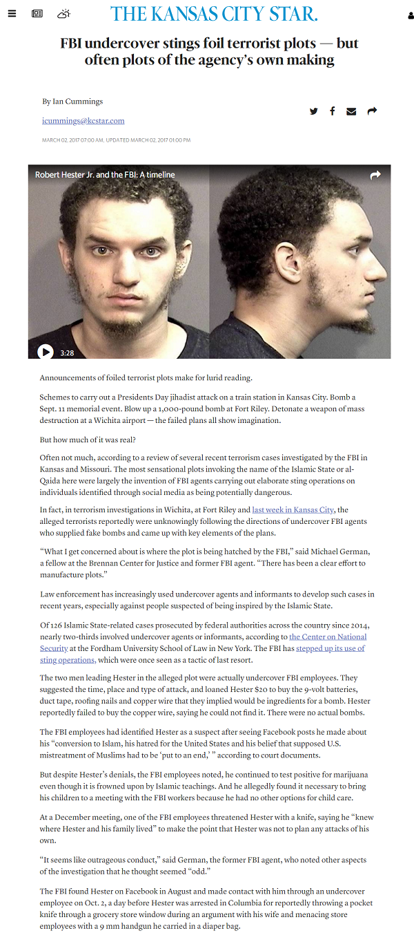 The Kansas City Star, FBI undercover stings foil terrorist plots — but often plots of the agency’s own making.
