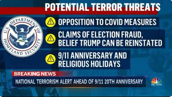 Just as we repeatedly warned would happen, the corrupt, criminally-run federal government has just declared war against the American people. In a widely-circulated Homeland Security warning, the federal government declared that anyone who opposes vaccines, masks, social distancing or lockdowns poses a “potential terror threat” to society at large. Dubbed a “National Terrorism Alert” by CIA-run NBC News, the warning also insists that anyone who thinks there was fraud in the 2020 election might also be a terrorist.
