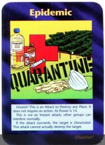 The Tarot-style card game features several cards that perfectly align with the globalist “deep state” schemes to control the populace, or battle oppositional forces to their goals of complete control. The cards themselves instruct the players about how they can control, manipulate and propagate disaster, politics and terrorist-style events.